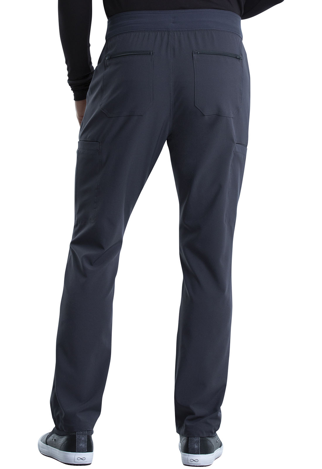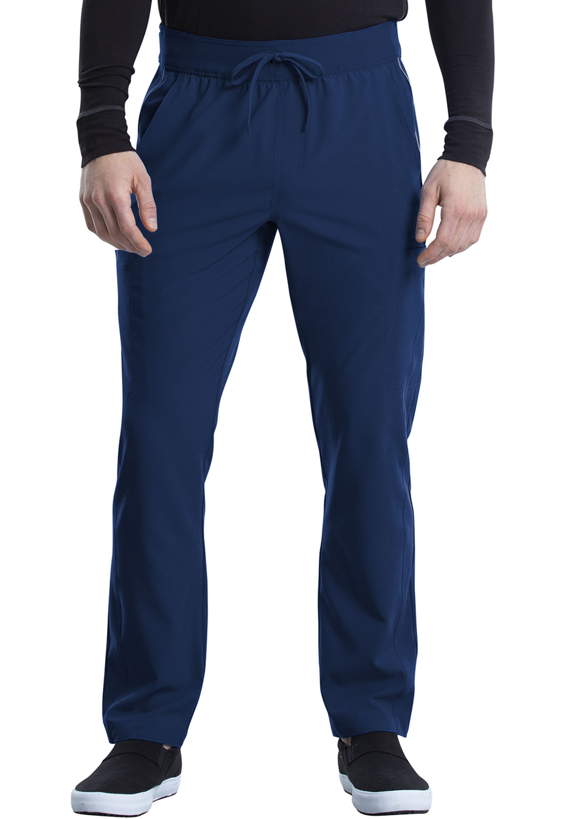 This Men's fit pant has a knit waistband backed with logo elastic and drawstring. Other features include mock fly plus reflective piping on the side seaming ending at the cargo pockets. There are seven pockets in total: two front pockets, two half welt cargo pockets, one hidden cellphone pocket on the wearer's right cargo pocket, and two zip back patch pockets. Interior flat elastic at the leg hem provides versatility. Tapered leg, 15" opening. Inseam: 31 1/2"