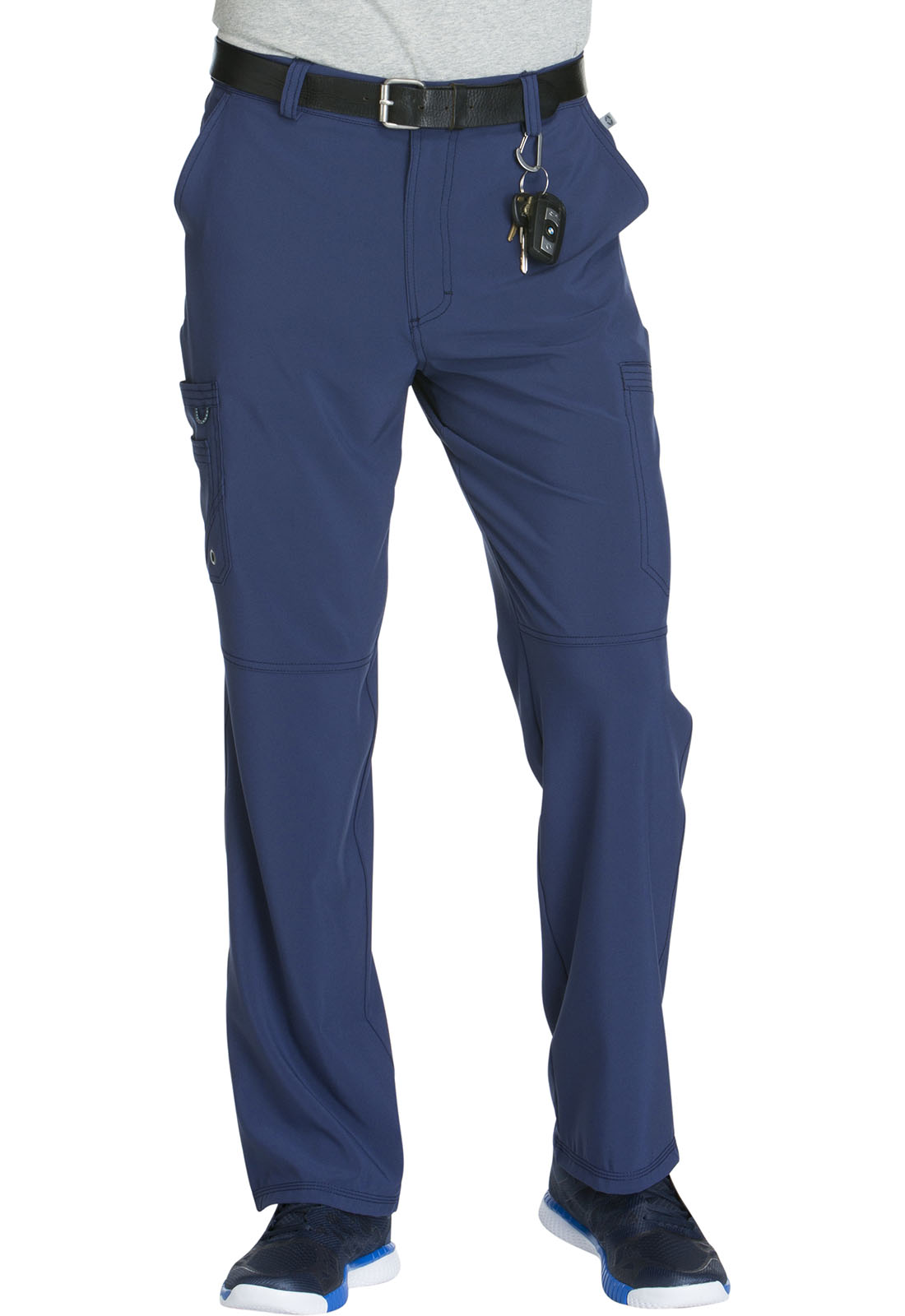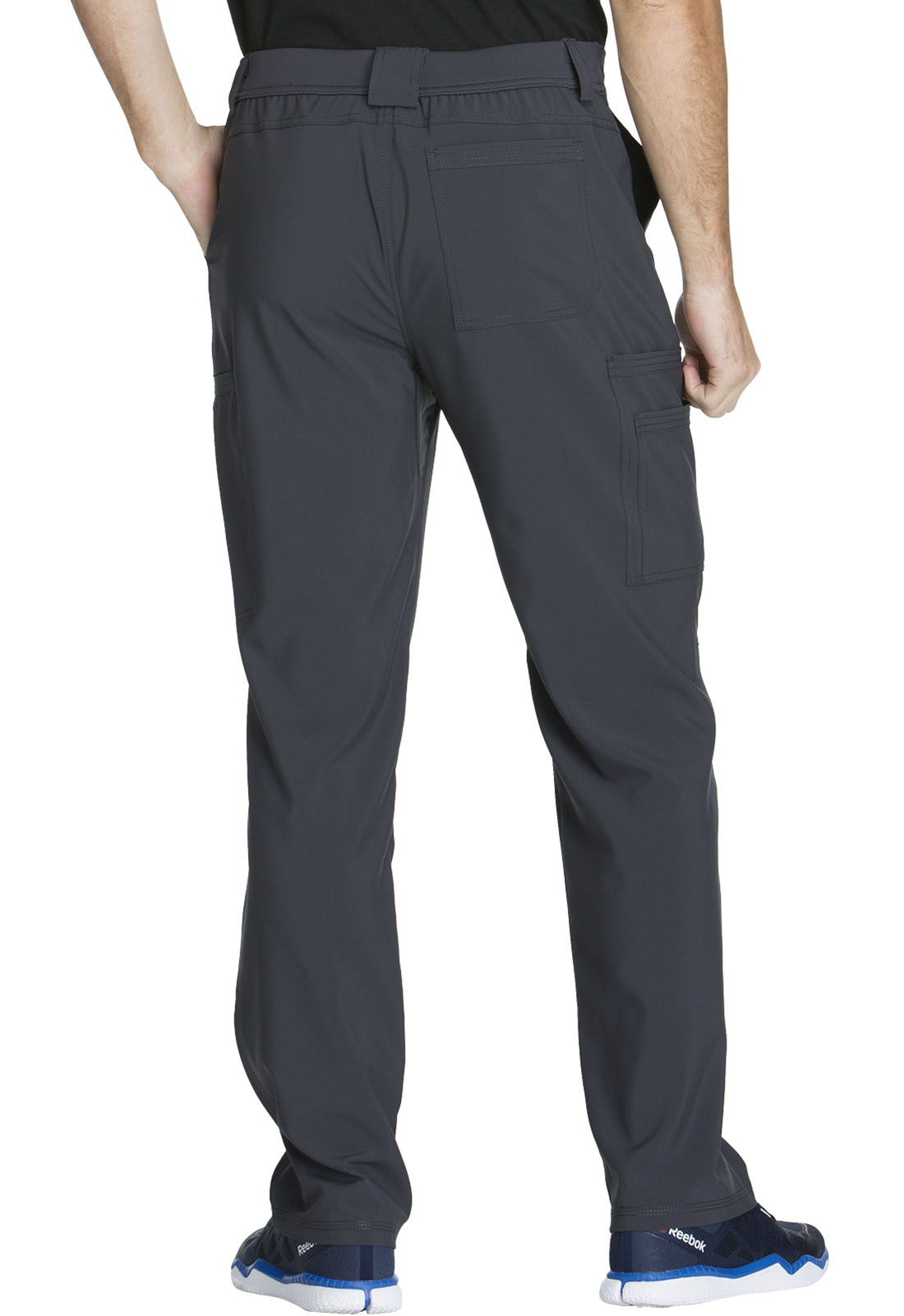 A Men's Athletic fit tapered leg pant features an inside functional drawstring, back elastic waistband with rib-knit, five belt loops, a zip fly with button closure and a hidden inseam gusset for extra ease. Also featured are two front slash pockets, a right double cargo pocket with bungee loop and grommet, left welt cargo pocket, back patch pocket and knee seams. Inseam: 32"