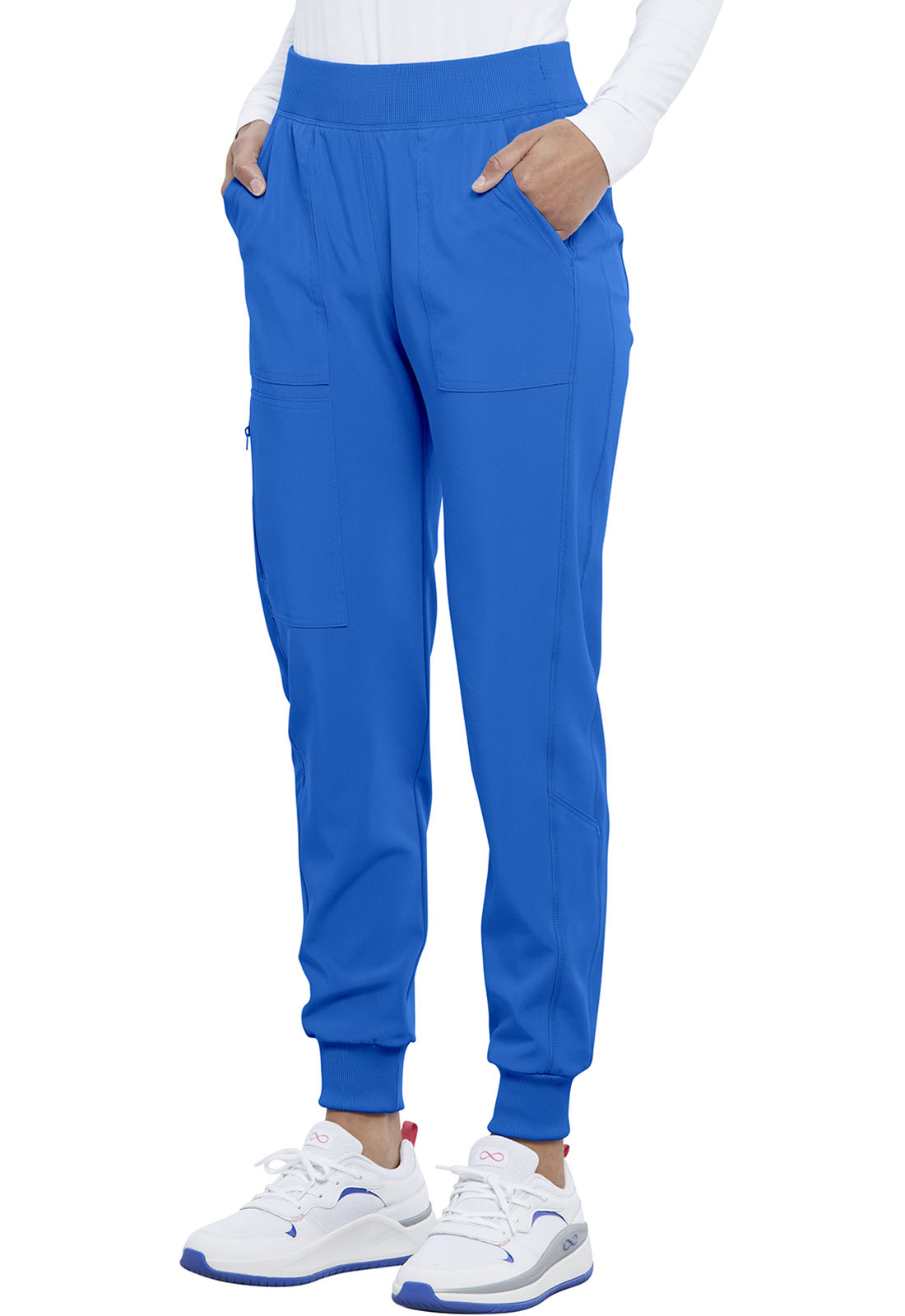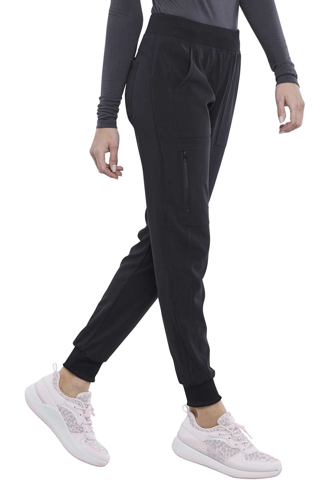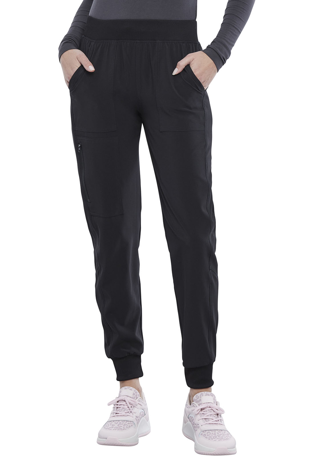 This Contemporary fit pull-on jogger has a rib-knit waistband with interior elastic and inside drawstring for comfort and security. Side leg panels provide lengthening effect while curved back yoke seam provides fit and shaping. There are five pockets for storage: two front pockets, one side zip cargo pocket, and two back pockets. Side leg panels and rib-knit cuffs complete the look. Tapered leg, 9" opening.