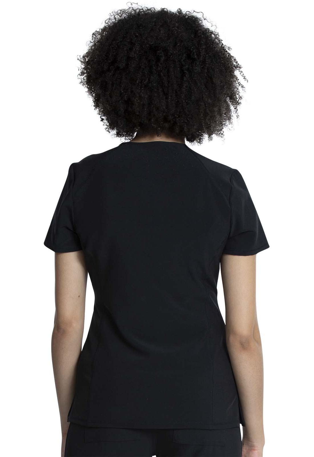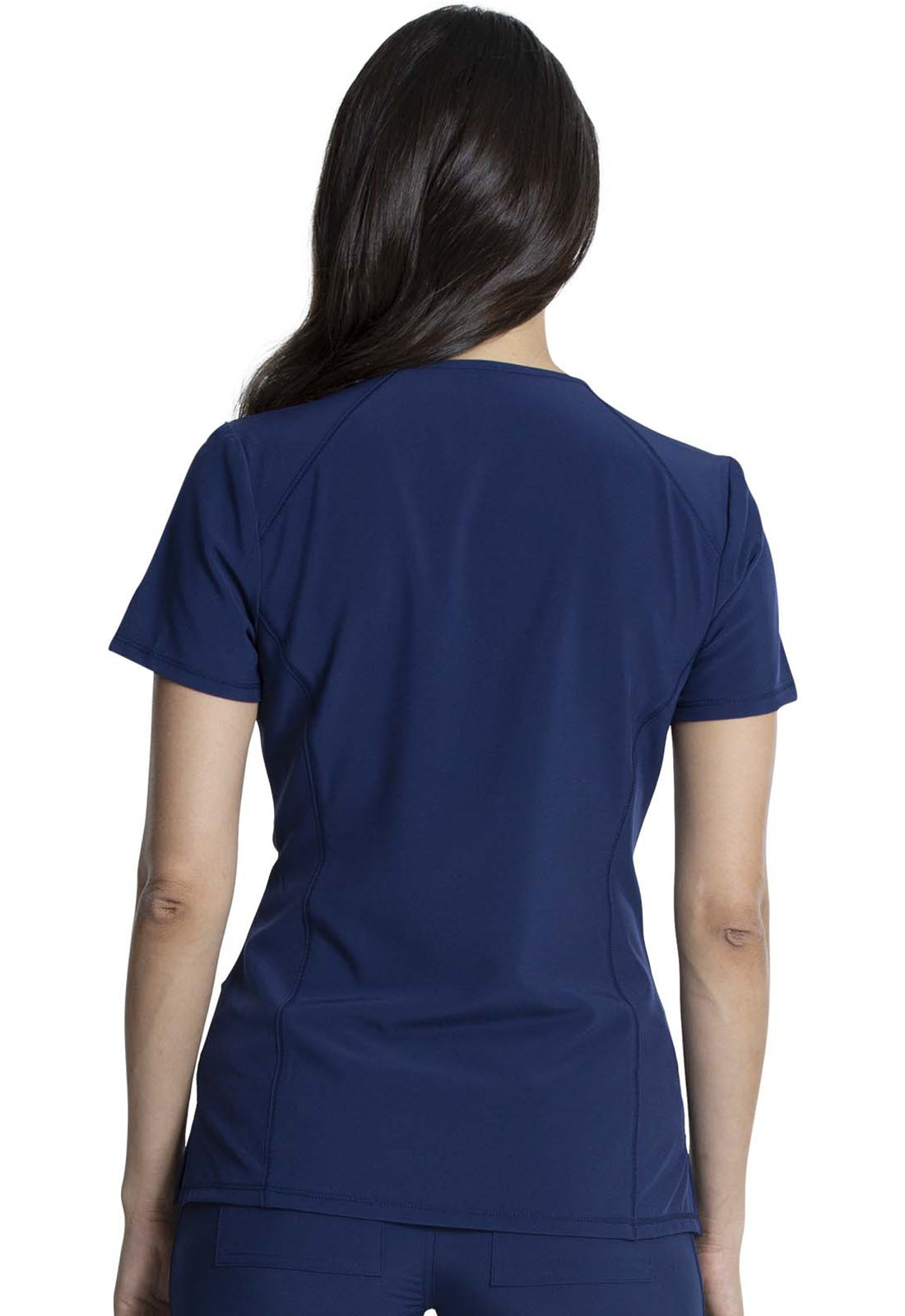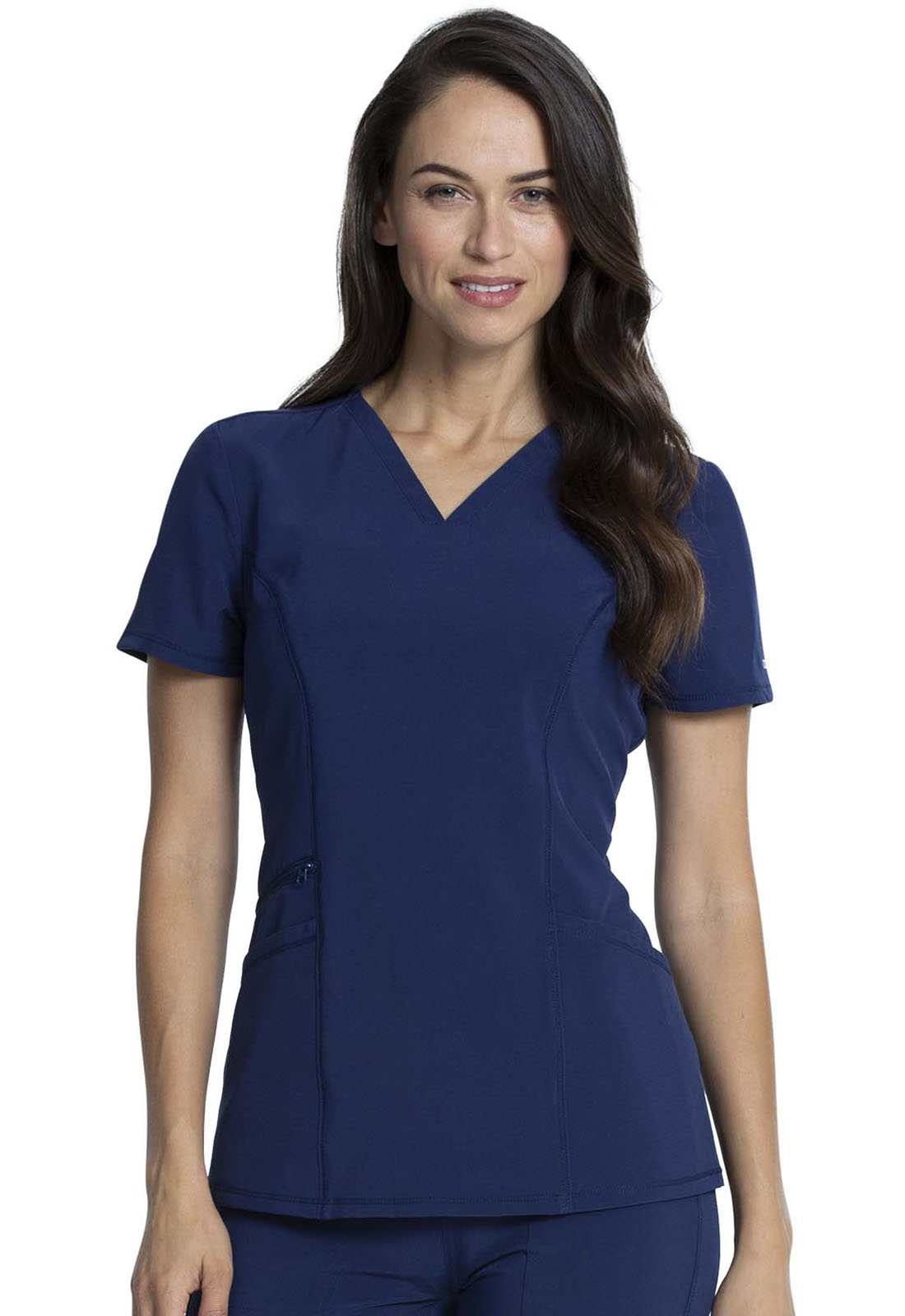 This Contemporary fit v-neck top features front and back princess seams plus back yoke seams. There are three pockets: two front patch pockets and a zip cell phone pocket above the right patch pocket. Side vents for ease of movement. Center back length: 26"